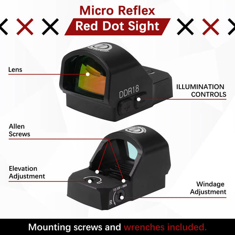 - Durable & Lightweight Construction – Built for rugged use, the DDR18 red dot withstands recoil and harsh environments. Includes optic, mount, screws, and tool (CR2032 battery included).