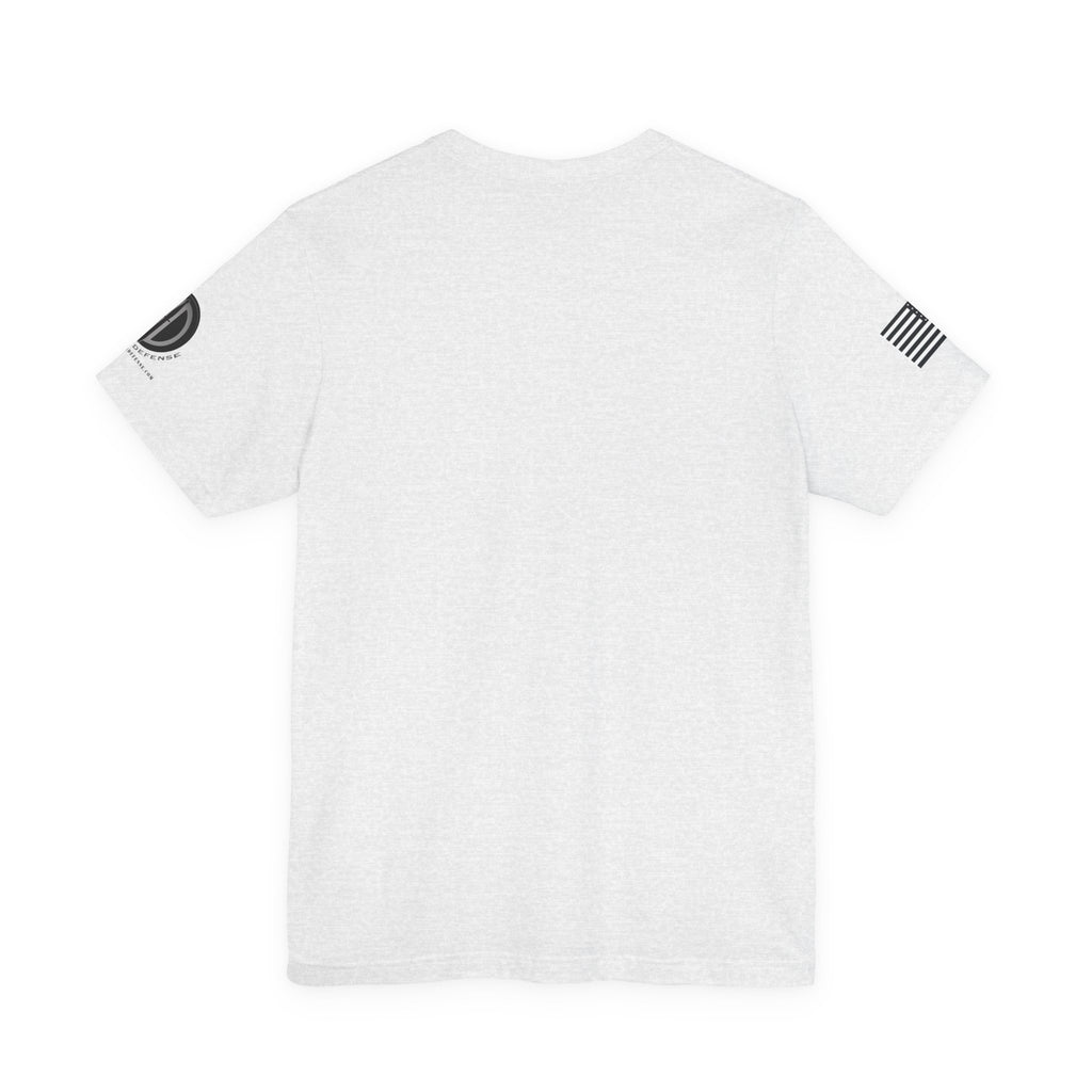 Lightweight and stripped-back, this jersey tee carries a quiet, martial energy. Soft Airlume cotton drapes cleanly over the shoulders while the ribbed crew neck and side seams keep the silhouette neat. A bold, centered emblem and minimalist sleeve marks give it a uniform-like feel — worn by someone who values discipline, clarity, and understatement. Wear it under a field jacket or alone on warm days; it settles into everyday routines and weekend moves with equal ease.